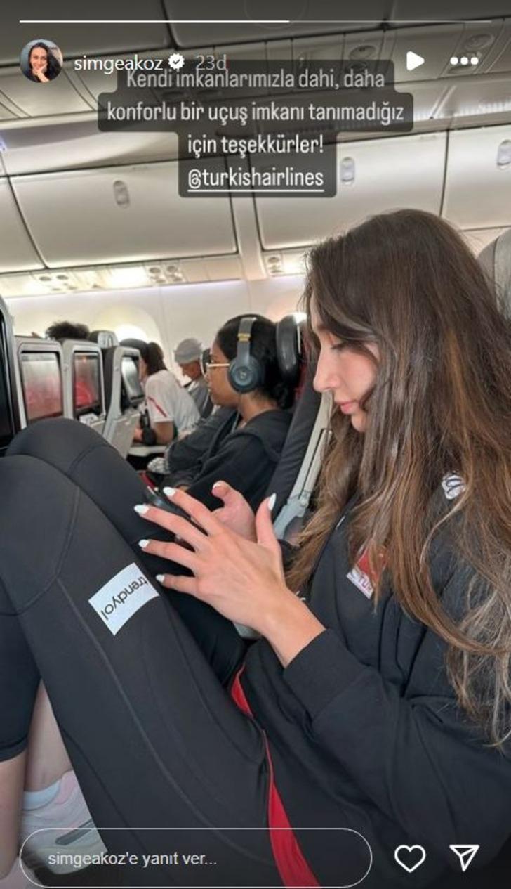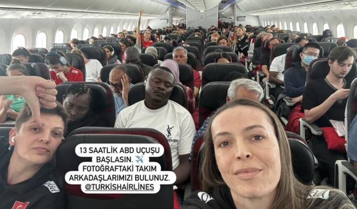 THY'yi de sosyal medya hesabında etiketleyen başarılı voleybolcu "13 saatlik Amerika yolculuğumuza economy bölümünde başlamış bulunmaktayız. Çok teşekkürler @turkishairlines" yazdı.
