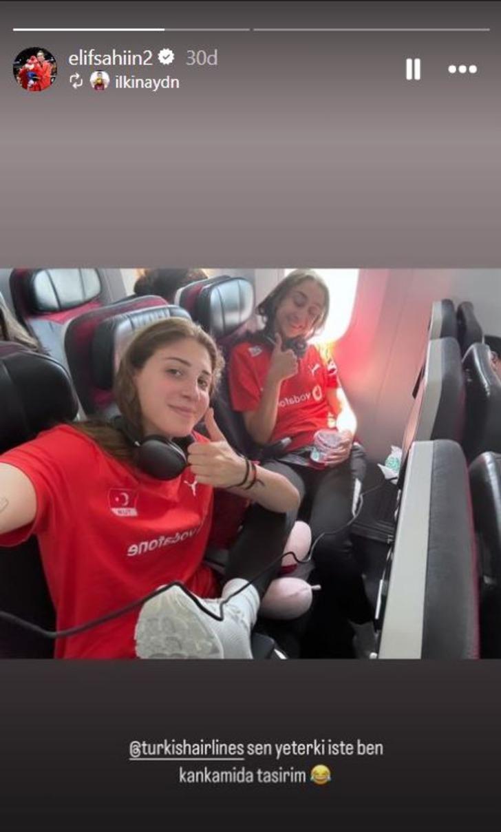 Hande Baladın da sığmayan ayaklarını paylaşarak arkadaşlarına destek verdi. Takımın kaptanı Eda Erdem de uçağın içini paylaşarak tepkisini gösterdi.