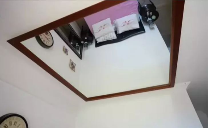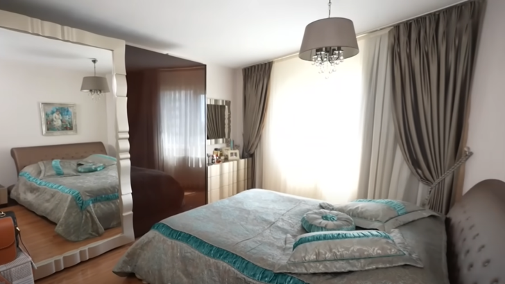 Küçük yatak odasında yatak karşısındaki kocaman ayna ise dikkatlerden kaçmıyor. Aynayı görenlerin aklına da elbette tüm yatak odası ayna olan Erman Toroğlu geliyor.