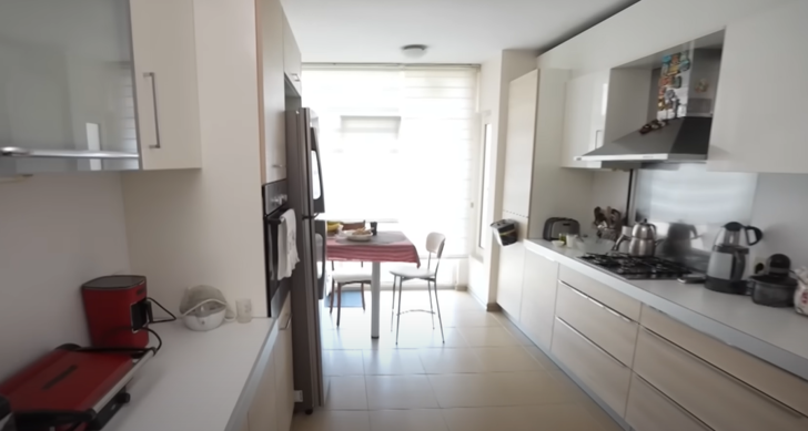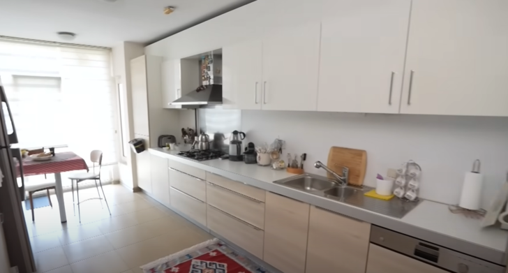 Sade bir mutfağa sahip olan şarkıcı dolap renklerinde bej ve toprak tercih etmiş.